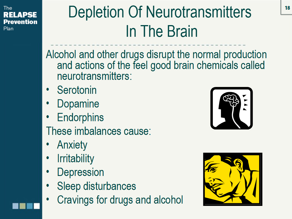 - Alcohol and other drugs disrupt the normal production and actions of the feel good brain chemicals called neurotransmitters: