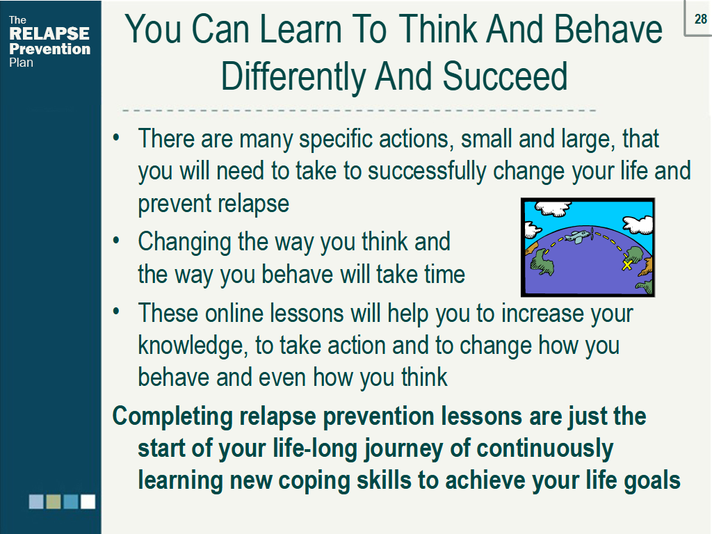 - There are many specific actions, small and large, that you will need to take to successfully change your life and prevent relapse