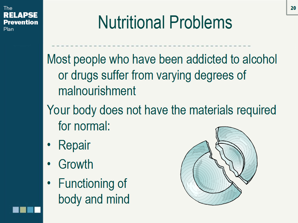 - Most people who have been addicted to alcohol or drugs suffer from varying degrees of malnourishment