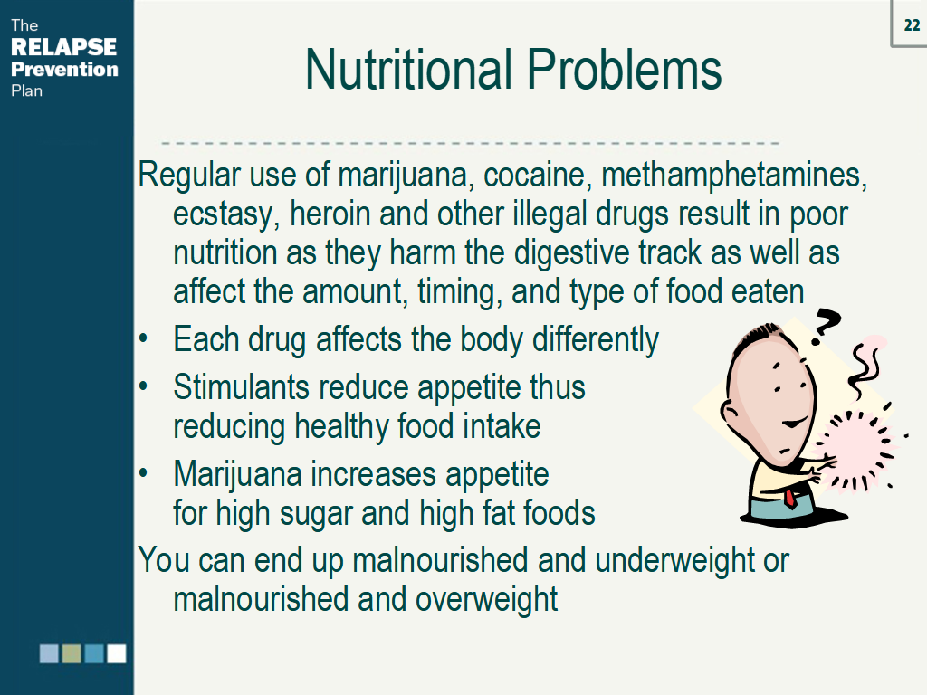 - Regular use of marijuana, cocaine, methamphetamines, ecstasy, heroin and other illegal drugs result in poor nutrition as they harm the digestive track as well as affect the amount, timing, and type of food eaten