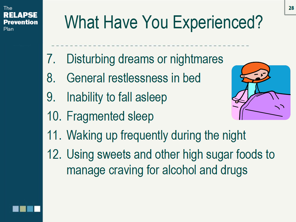 - Using sweets and other high sugar foods to manage craving for alcohol and drugs